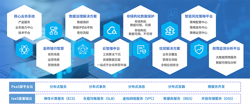 数智金融解决方案重点涵盖核心业务系统、数据治理平台、非结构化数据保护、智能风控策略平台、金砖银行智算、云智维中台、信贷解决方案、舆情监测分析平台等诸多方面,助力金融机构实现数智金融体系建设。