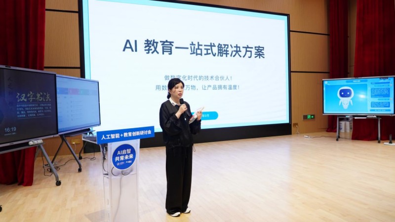 其余企业代表分别分享了人工智能空中课堂、中小学智慧教育服务平台、AI智慧幼儿园等多种智慧教育产品。