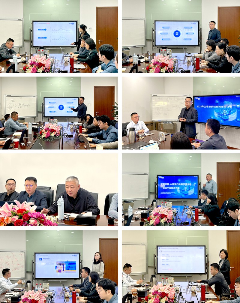 会上,运营管理部轮值副总曾蓓就公司整体经营情况作汇报,对各事业部第三季度的经营数据进行了总结,并对相关风控事项作了重点提示。数字政企事业部汇报了AI在政务及公检法、金融、医疗、能源、城市空间(公园)、党建、电商等领域的项目进展、核心数据与目标达成情况,事业部总经理陈军提出要精细化管理、夯实“销售漏斗”,并部署了人才建设与业务增长策略。数字校企事业部围绕AI在K12智慧校园、智慧高校与职校、数字课程资源、产教融合平台、数据中台、一站式服务以及数字文印等领域汇报了阶段性成果与关键数据,事业部总经理王文喆强调深化现有AI产品研发,拓展创新布局,推动教育与产业深度融合。最后,运营管理部汇报了流程优化、资源保障与风险防控等工作成效,提出将聚焦体系化运营能力建设,强化风控与跨部门协同。