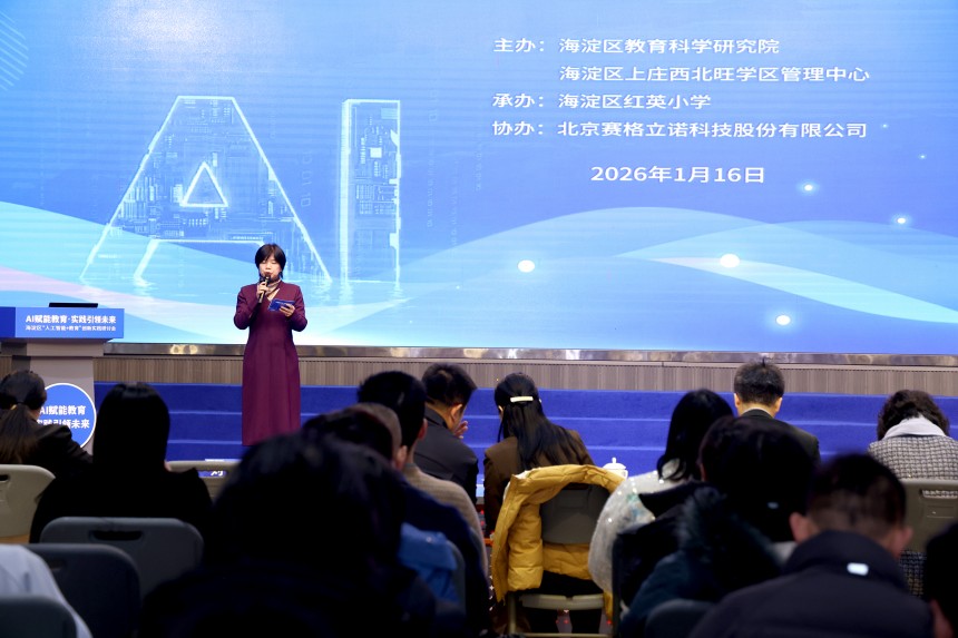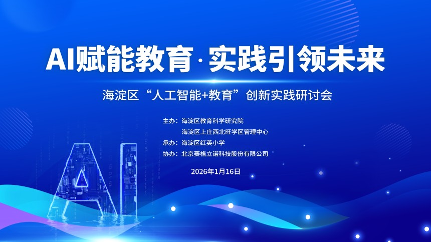 2026 年1月16日,由海淀区教育科学研究院、海淀区上庄西北旺学区管理中心联合主办,海淀区红英小学承办,北京赛格立诺科技股份有限公司协办的“AI赋能教育·实践引领未来‘人工智能+教育’”创新实践研讨会在红英小学六里屯校区隆重举行。