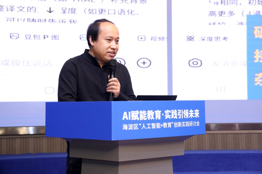 海淀区红英小学数字中心主任王新带来《AI+教育——为学生成长赋能》的主题分享,结合学校鲜活实践案例,展现了AI在学科教学中的创新应用。