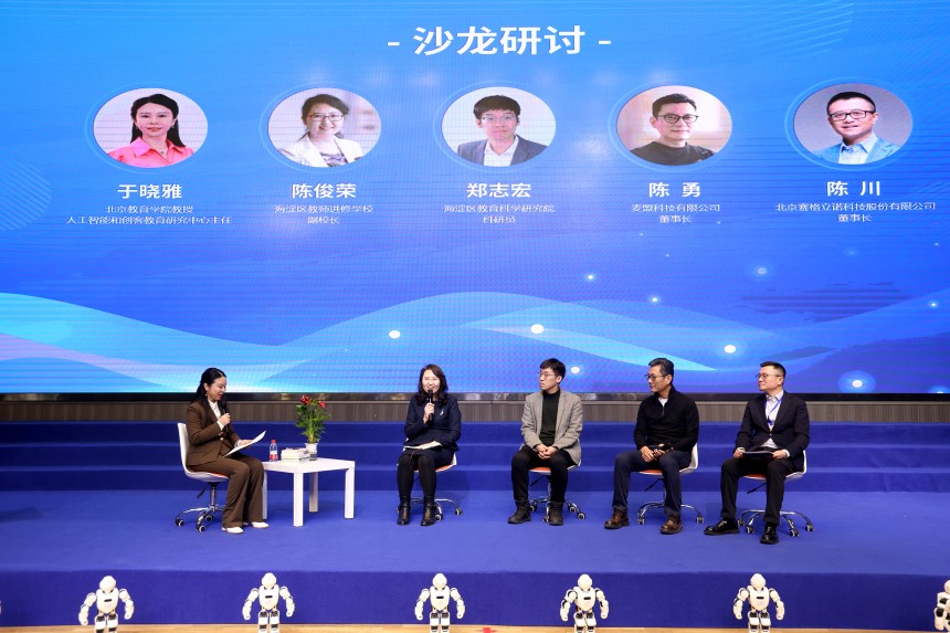 沙龙研讨环节,在于晓雅教授的主持下,海淀区教师进修学校副校长陈俊荣、海淀区教育科学研究院科研员郑志宏、麦盟科技有限公司董事长陈勇、北京赛格立诺科技股份有限公司董事长陈川围绕AI助教研学实践落地展开深度对话,就多维度教学评价、师生双减、精准作业设计、学情数据应用等核心议题交换见解,凝聚了“技术赋能、育人为本、精准高效、协同创新”的行业共识。